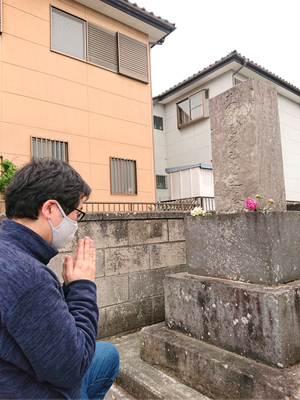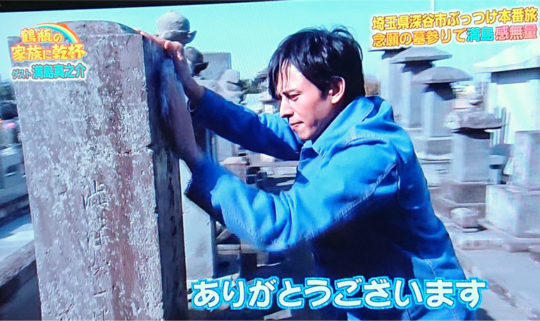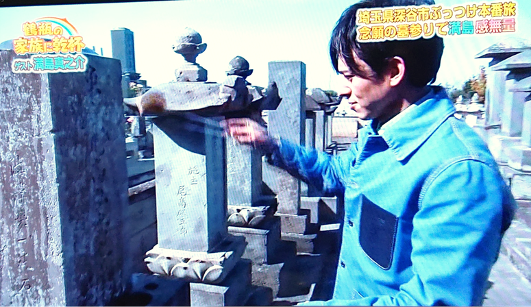 NHK大河ドラマ『青天を衝け』で渋沢栄一翁の従兄・尾高長七郎役を演じられている俳優の満島真之介さんが、5月10日(月)放送の『鶴瓶の家族に乾杯』に出演され、笑福亭鶴瓶さんと一緒に深谷を訪問されました。満島さんは、尾高家へのお墓参りが念願だったとのことです。尾高惇忠、長七郎のお墓を前に、感無量のご様子でした。