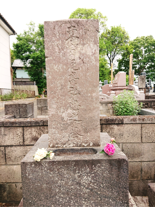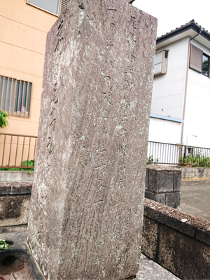 渋沢栄一翁が建立したもので、墓碑の表面には、「東寧尾高弘忠之墓」と刻まれています。